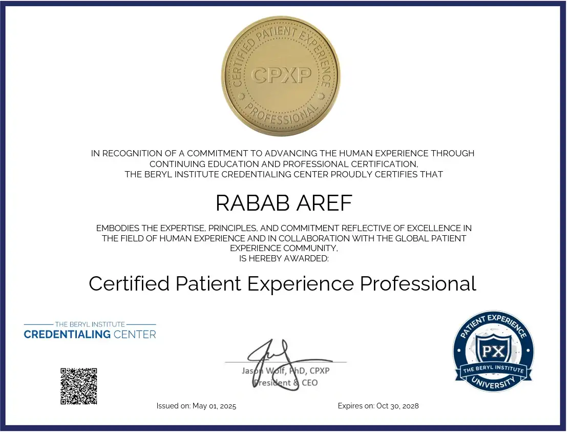 أقدّر جهود الأكاديمية في توفير هذا المستوى العالي من التدريب، وأوصي به لكل من يرغب في التخصص في تجربة المريض. شكرًا لكم على دعمكم المستمر!